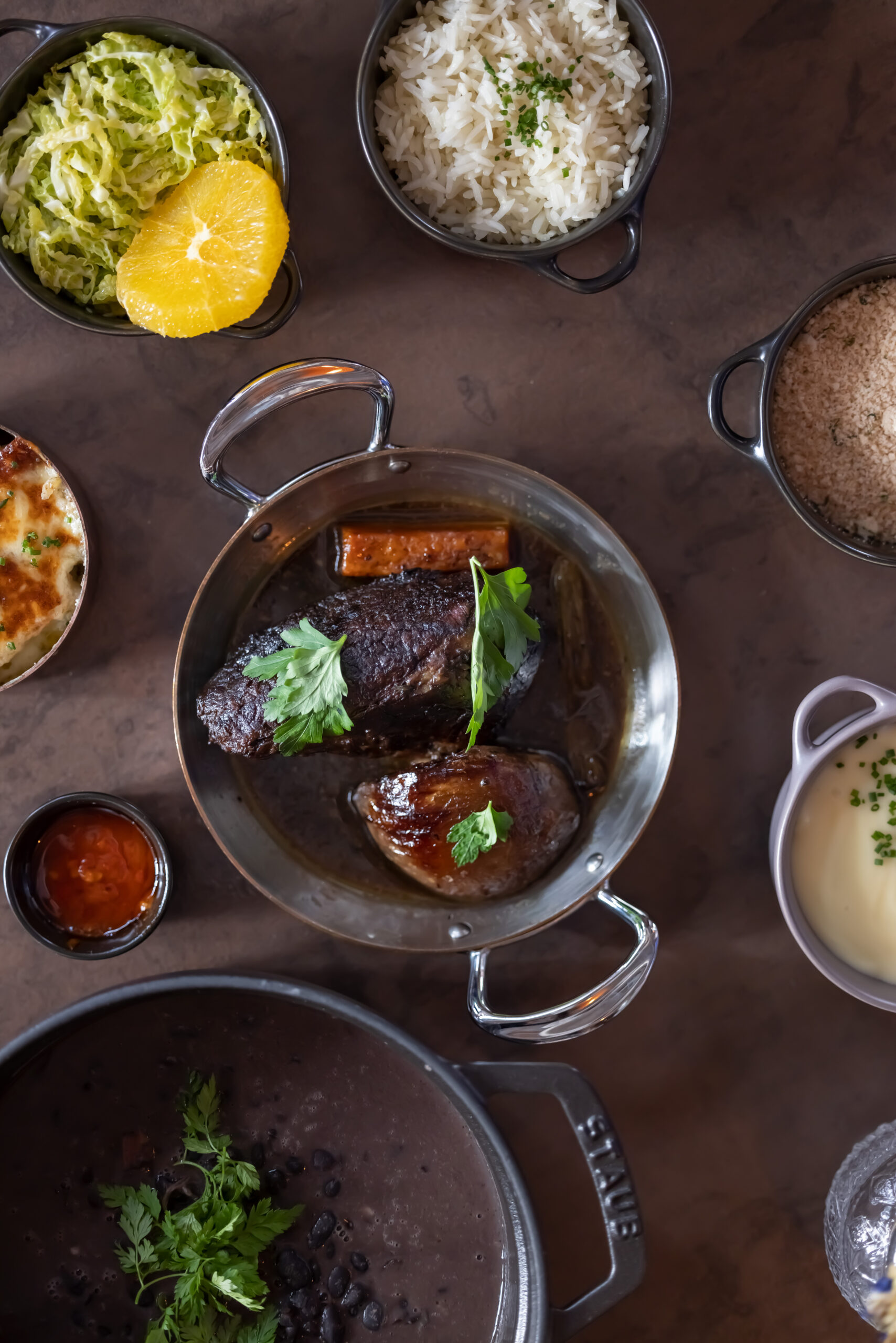 L’épicerie-cantine-cave à manger d’Alessandra Montagne-Gomes a ouvert il y a quelques mois en face de son restaurant Nosso. Un lieu hybride qui fait à la fois épicerie (on y découvre les trouvailles locavores de plus de 100 producteurs en circuit court), cave (150 références de vins et spiritueux) et cantine. La semaine au déjeuner, on y sert une offre de cocottes (viande, poisson ou veggie) en menu ou des sandwichs, des pao de queijo, des salades et des pâtisseries maison. Nous avions choisi ce jour-là d’emporter un tartare de saumon, crème de betterave avec en plat un risotto d’épeautre avec des champignons de Paris et en dessert une crème caramel bien gourmande.
