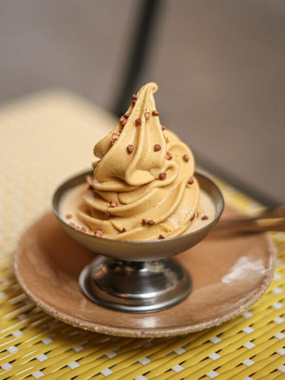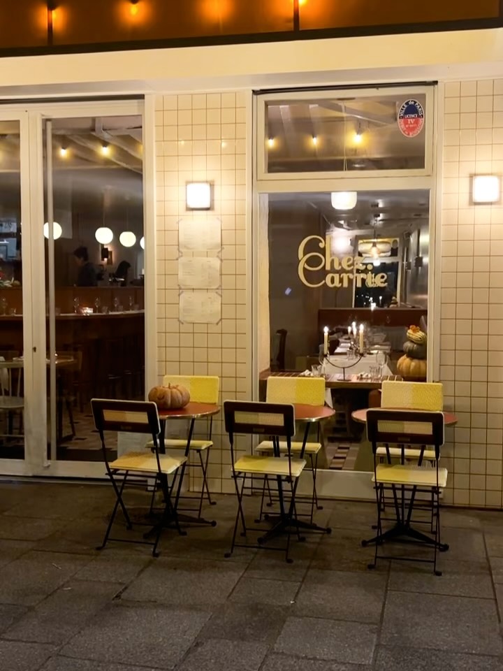 Le soir venu, changement de décor, changement d’ambiance. On se rends chez Carrie, l’adresse où la cheffe américaine Carrie Solomon revisite Thanksgiving comme si elle écrivait un nouveau chapitre de cette tradition, en français, mais avec l’âme de là-bas. Le menu démarre fort : nachos de sarrasin croustillants, velouté forestier aux châtaignes… que la soirée s’annonce chaleureuse et généreuse. Et puis arrive la star : la dinde, confite aux herbes, servie avec une purée fumée qui pourrait devenir un sujet de conversation à elle seule. Les végétariens sont choyés avec de délicieuses polpettes courge–céleri, nappées d’un gravy miso-shiitake qui ferait se reconvertir les carnivores. Et puis l’éternelle question : pumpkin pie ou pécan ? Carrie enfonce le clou en déclinant l’exercice en glace aux dattes et pignons ou tarte miel-lait. On trinque au kombucha maison ou au vin naturel, et on réalise que ce dîner, comme le vrai Thanksgiving, célèbre d’abord ce qui compte : la table, les gens, le moment.