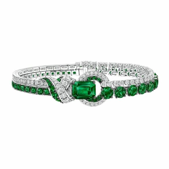 Le vert signature Graff s’exprime ici dans une ligne délicate d’émeraudes taille brillant résolument moderne. Est-ce le désir de toucher un public plus jeune ?