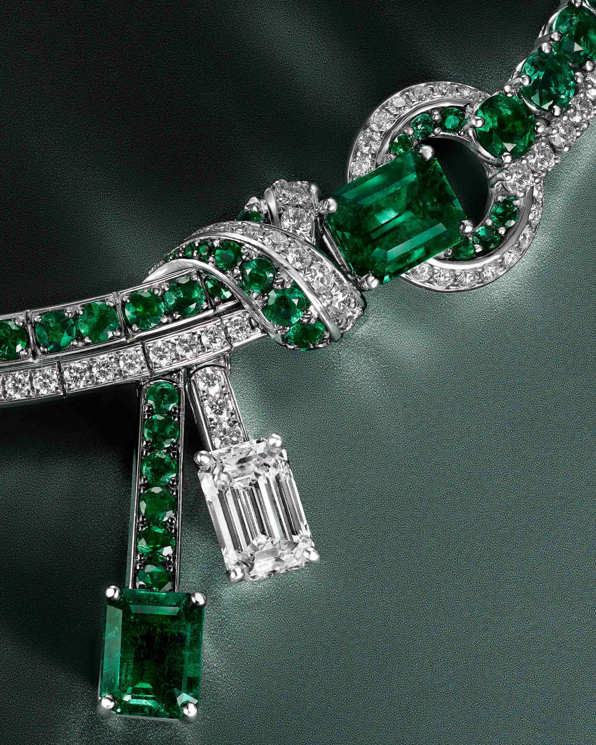 Quels défis techniques avez-vous relevés pour réaliser ce délicat nœud souligné d’émeraudes ?