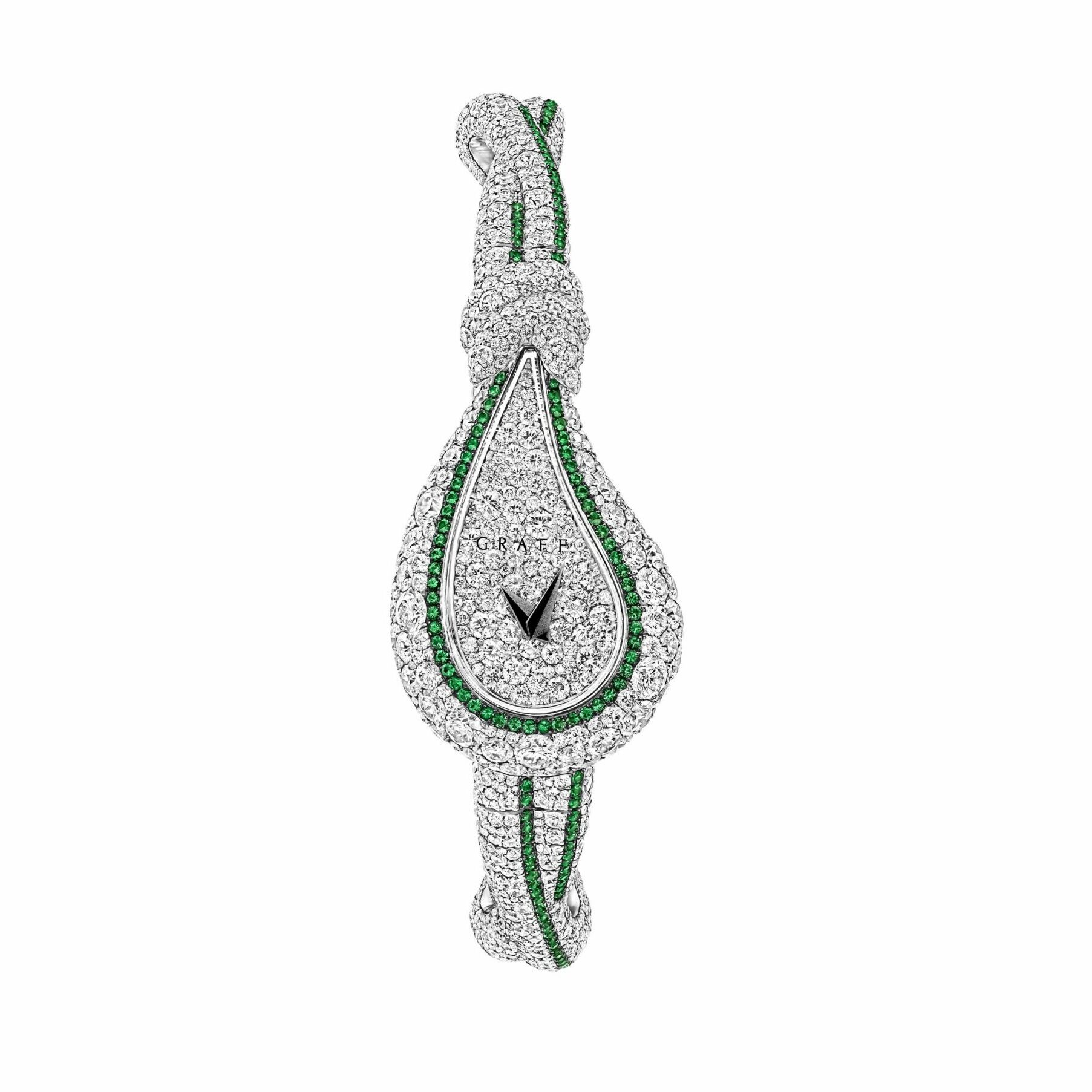 Le vert signature Graff s’exprime ici dans une ligne délicate d’émeraudes taille brillant résolument moderne. Est-ce le désir de toucher un public plus jeune ?