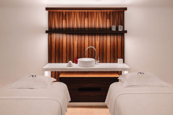Le Spa Augustinus Bader est un espace dédié aux soins sur mesure, où le décor conçu par Studio Liaigre, crée une intimité luxueuse et délicatement mise en lumière par Arnold Chan. Sur plus de 1000 m², au cœur de l’Hôtel Costes, le Spa propose différentes technologies ultra pointues pensées pour les soins de la peau. Une analyse cutanée tridimensionnelle, appuyée par l’intelligence artificielle via l’appareil Evelab permet d’établir un diagnostic cutané d’une grande précision. Parmi les autres soins proposés, on teste la radiofréquence, utilisée pour le traitement des mains, ou encore la technologie Ionix Light, qui associe LED, micro-courants et ultrasons, pour agir sur la fermeté et l’élasticité du visage.
