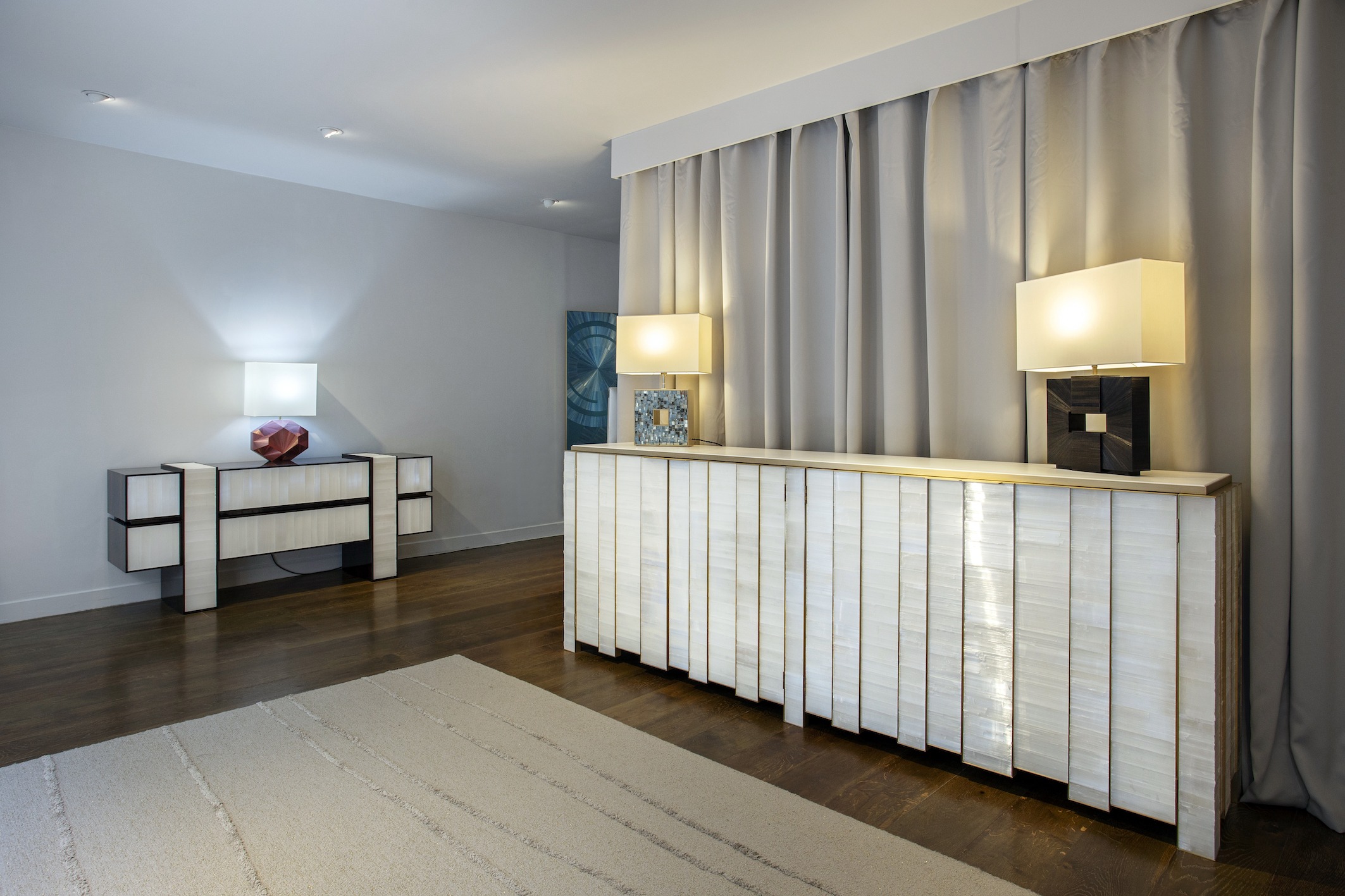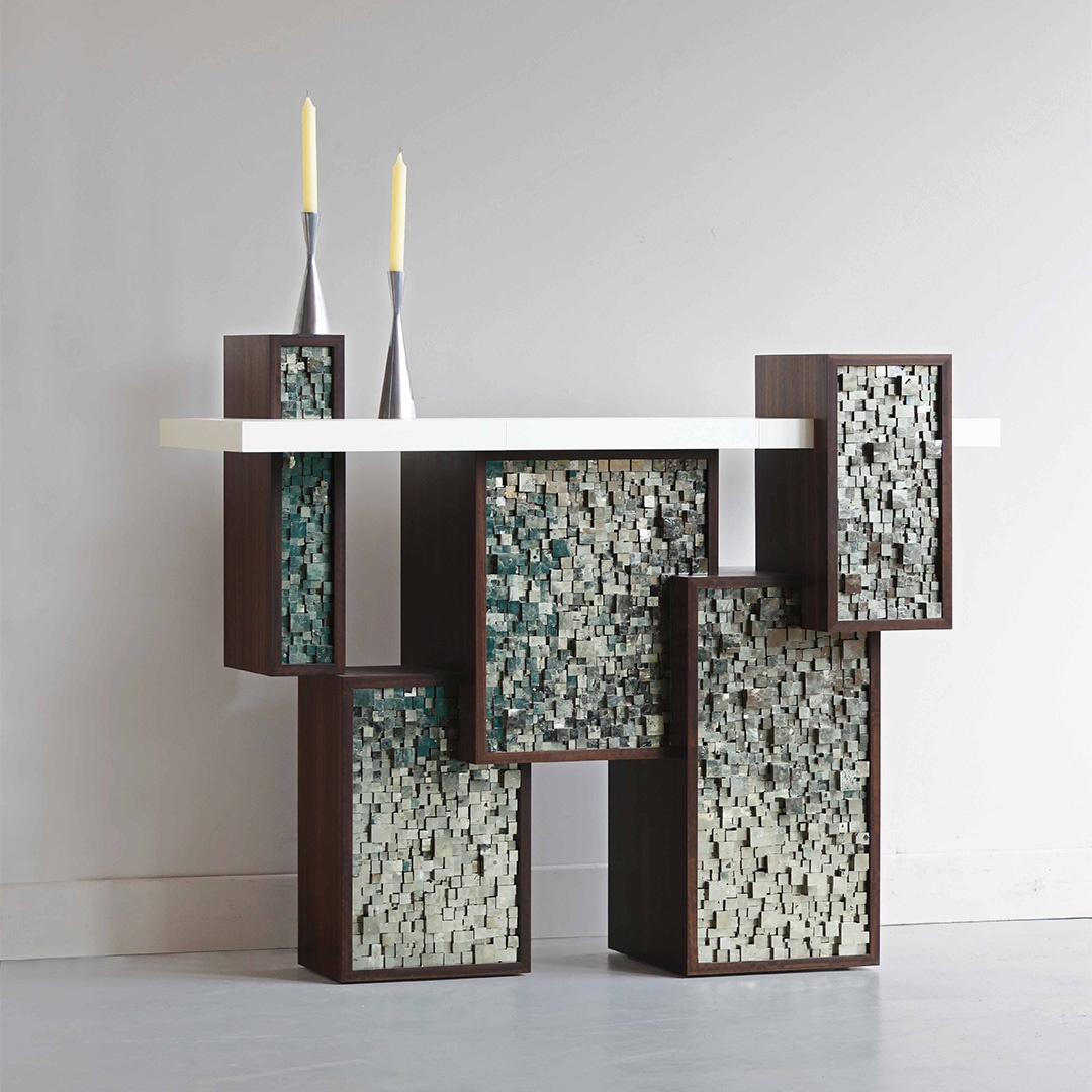 Dirigé par le Maître ébéniste Yann Jallu et par la designer et directrice artistique Sandra Scolnik-Jallu, la Galerie Jallu présente une sélection de mobilier explorant la forme, la couleur et la texture dont le travail évoque celui de la haute joaillerie. Ils sont connus pour leur savoir-faire dans la création de mobilier français composé de matériaux rares tels que le gypse, la marqueterie de paille, la pyrite, le mica, le parchemin ou la corne. Ils travaillent principalement avec des architectes d’intérieur et des maison de Luxe et ont également leur propre collection de mobilier.