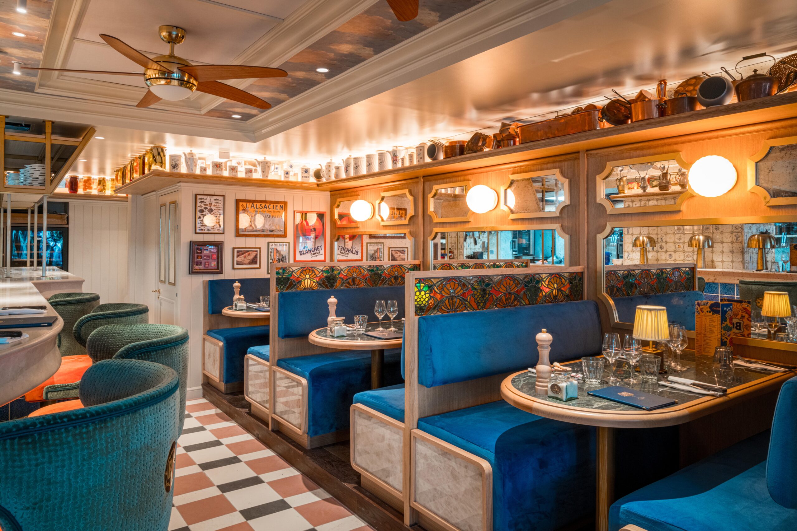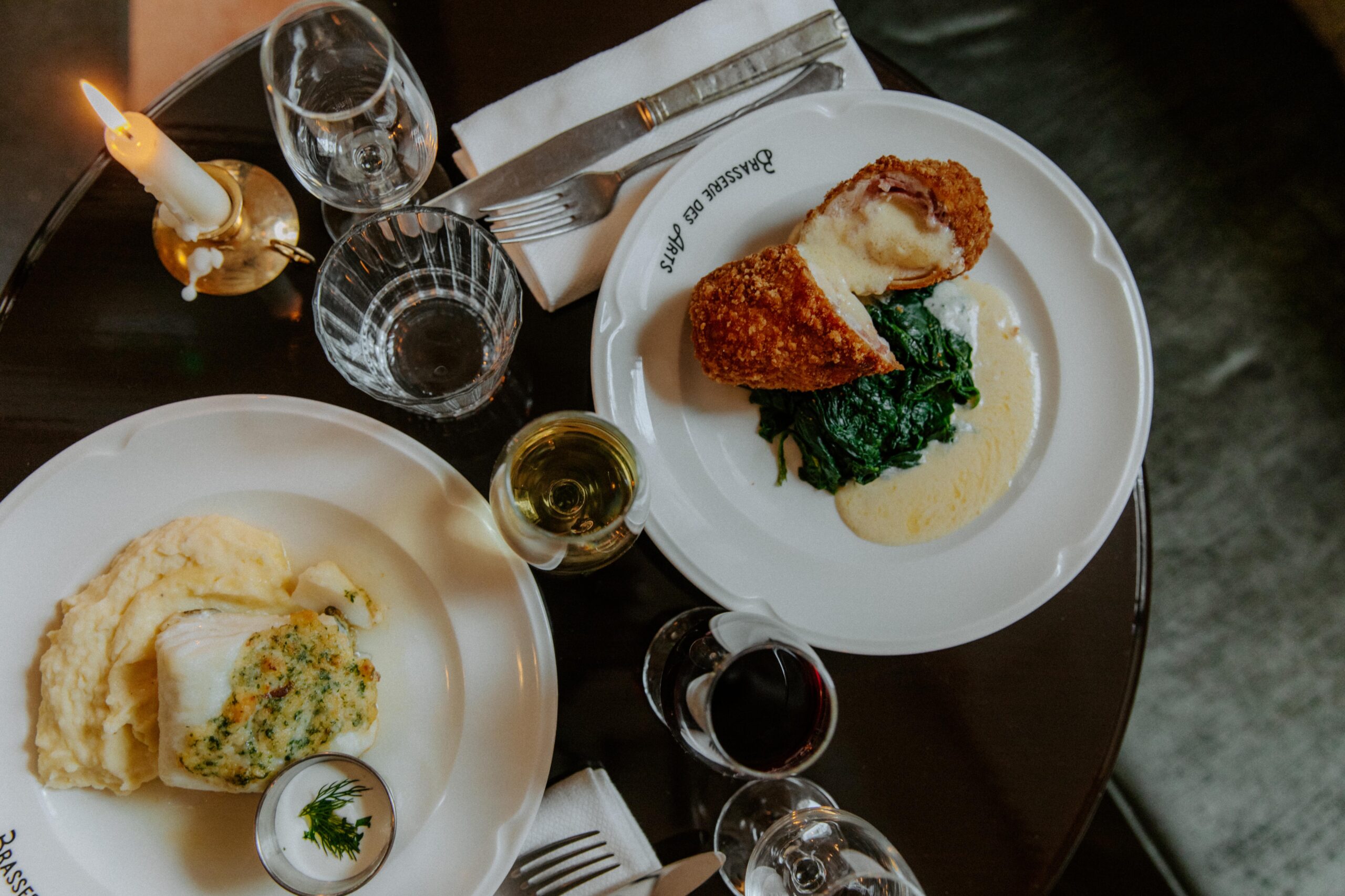 La brasserie, située au cœur du VIe arrondissement, allie avec élégance le style baroque à une cuisine d’exception dirigée par la cheffe Valentine Davase. L’intérieur, orné de marbre sculpté et de sièges en ébène, crée une atmosphère chaleureuse. Le restaurant propose une expérience gourmande tout au long de la journée et des soirées animées avec DJ sets, cocktails et champagne jusqu’à 2 h. Les menus changent tous les jours, mais, à la carte, on retrouve les classiques. Ce midi-là, nous avons été séduits par le plat, simple mais gourmand : un cordon bleu volaille fait maison avec sa tombée d’épinards. Nous vous conseillons d’assister à l’animation des crêpes Suzette flambées au Grand Marnier pour le dessert.
