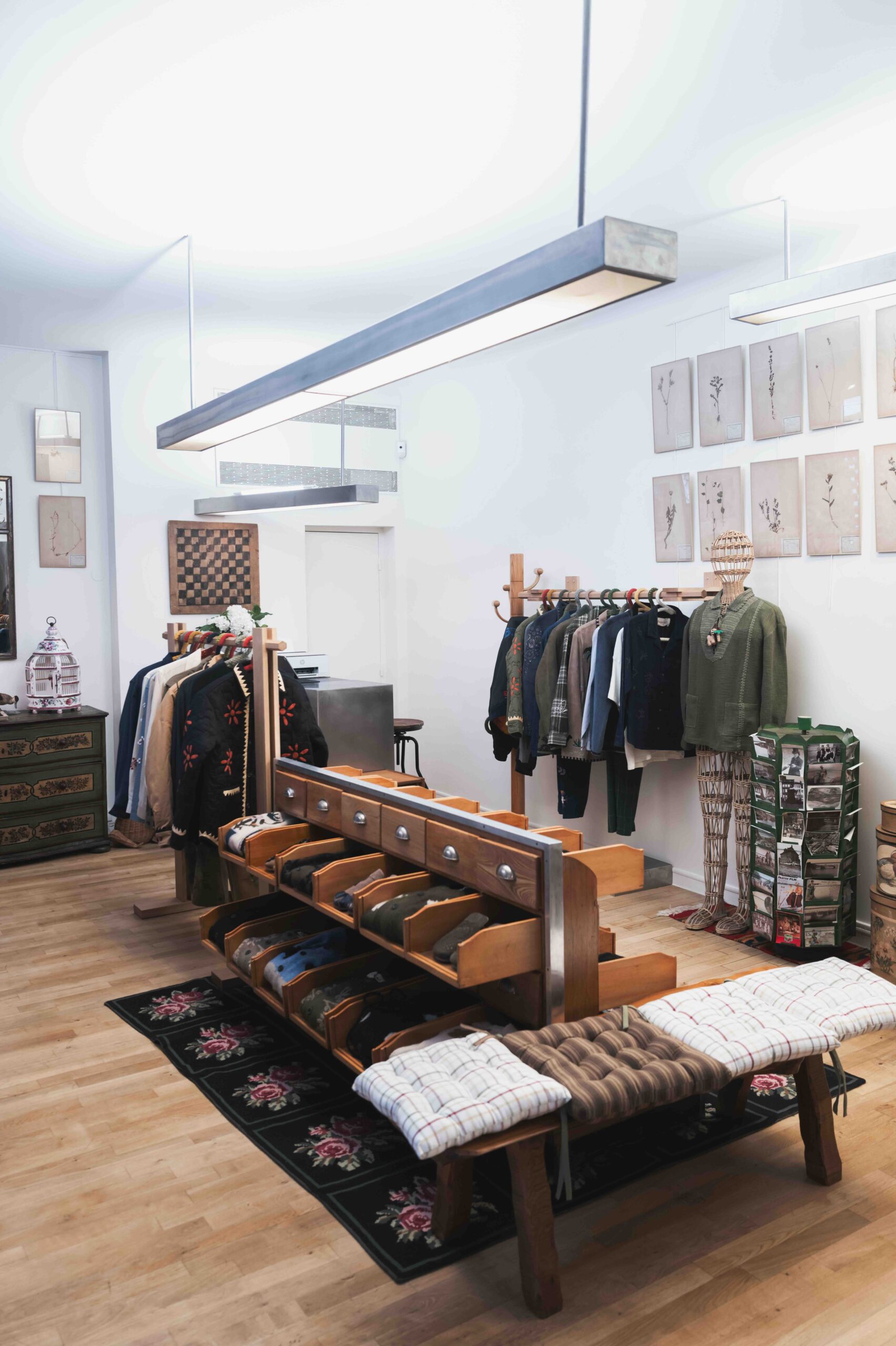 On l’attendait depuis des années : la première boutique Baziszt a enfin ouvert rue Saint-Roch. Elle dévoile un lieu qui semble réservé aux initiés, un écrin de plus de 80 m² répartis sur deux niveaux où chaque détail porte une histoire. La décoration, soigneusement chinée, compose un cabinet de curiosités contemporain : meuble ancien à chemises dédié à la maille, planches d’herbiers, mannequin en rotin, paravent vintage, panneaux japonais laqués. Des animaux naturalisés surveillent les visiteurs et un tourniquet de cartes postales anciennes invite à la rêverie. La cabine d’essayage, pensée comme un boudoir, crée un moment suspendu, délicieusement intime. À l’étage, un salon privé accueille les clientes dans une atmosphère de maison, propice à l’essayage et au temps pour soi.
