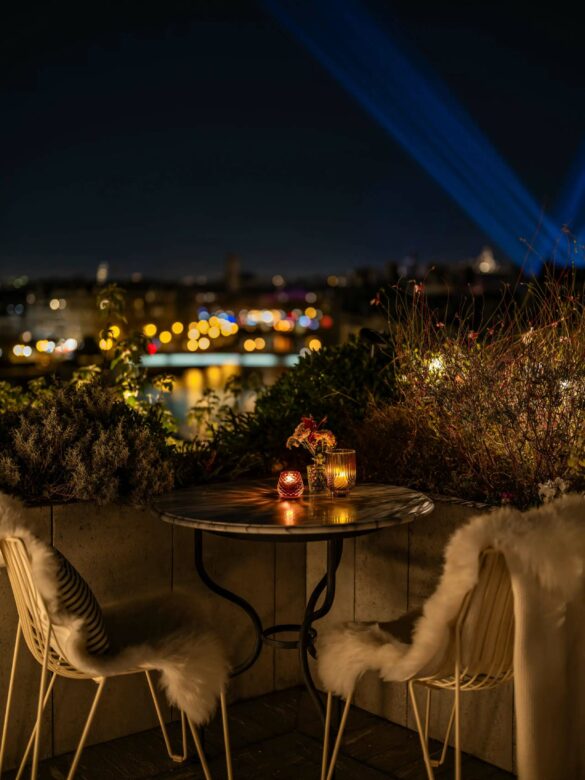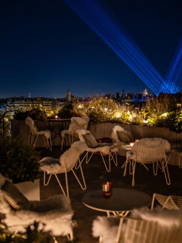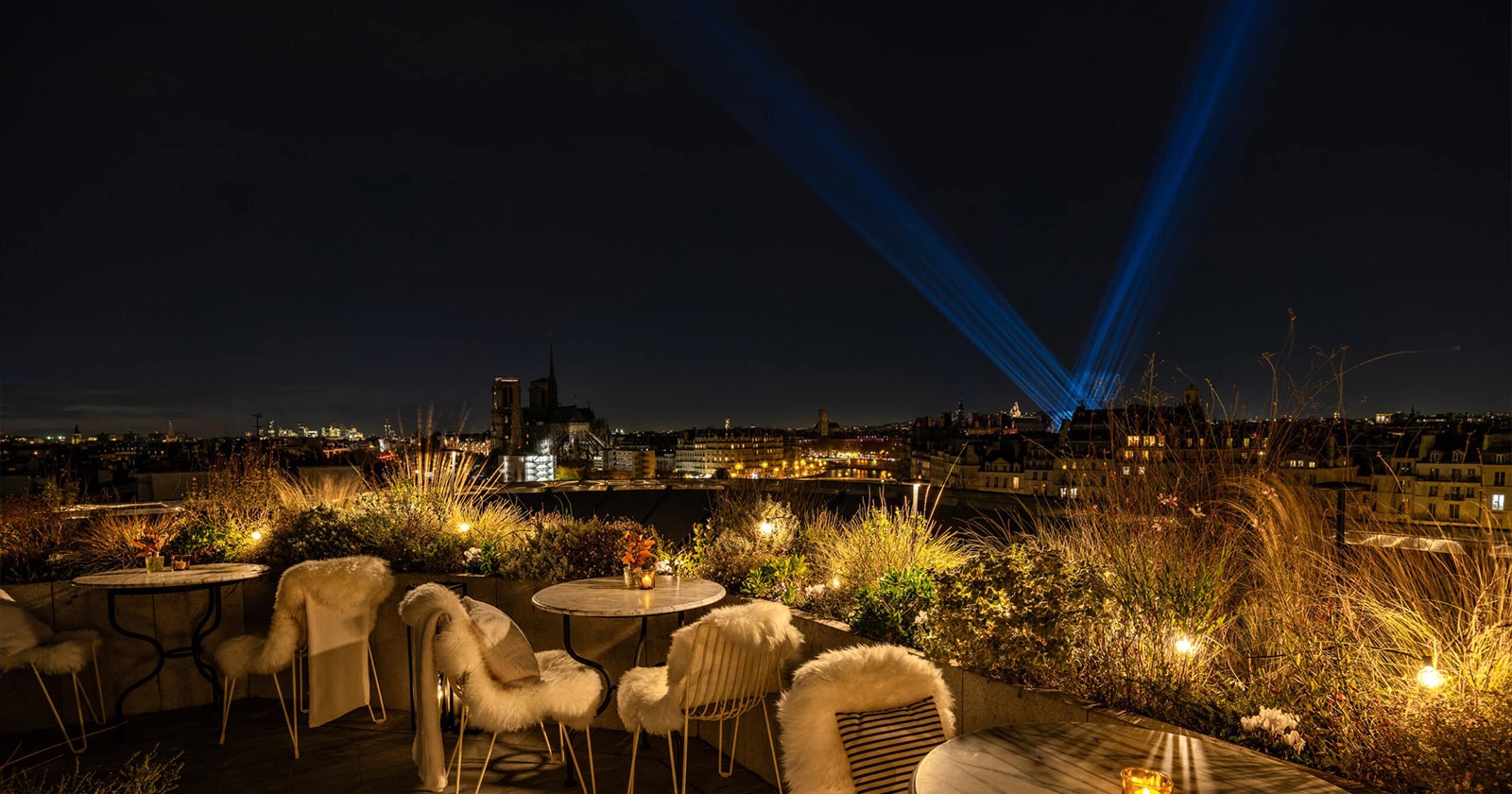 On commence le week-end par prendre de la hauteur, au sens propre comme au figuré. À la Tour d’Argent, le rooftop se transforme en jardin d’hiver, suspendu au-dessus de Paris. La Seine scintille, les monuments s’illuminent comme dans un film de Noël. Ici, le froid est traité avec sérieux : peaux de mouton, coussins, plaids et bougies font le travail pendant que l’on se réchauffe autour d’un cocktail chaud, d’un ver de vin ou d’une coupe de champagne. À la carte, huîtres et canard à la Lucullus jouent les tentateurs. Le genre de pause qui réconcilie avec l’hiver.