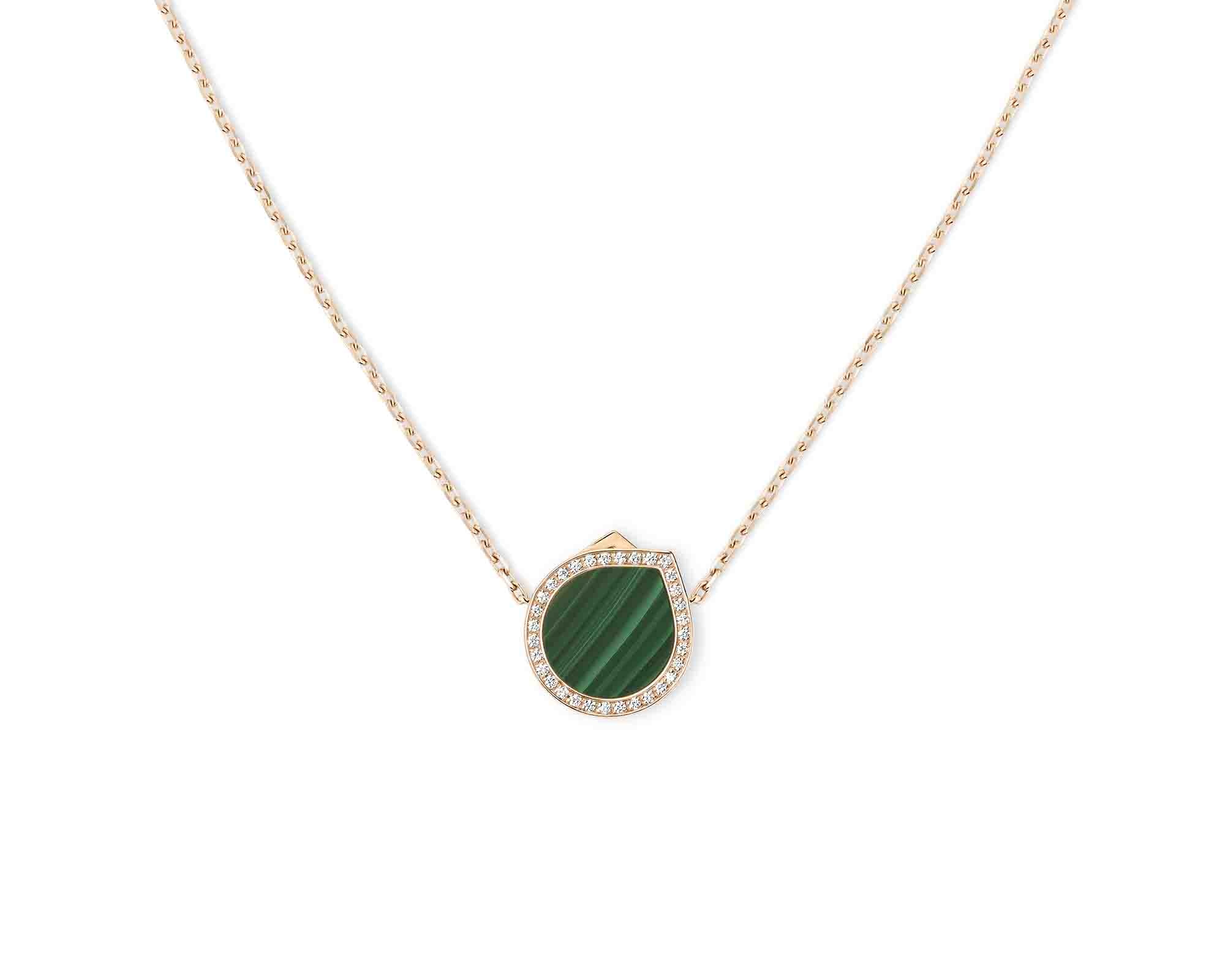 La générosité dans la simplicité ! Le pendentif iconique Antifer est aujourd’hui réinterprété avec de la couleur : la malachite, pierre verte foncée, est ponctuée de veines droites qui saisissent la lumière.