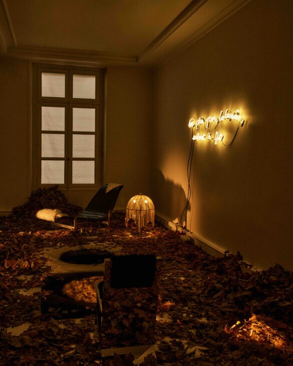 Rue de Castiglione, on avance sur un tapis de feuilles. Cuir, fourrure, lumière : Dimorestudio brouille les frontières entre nature et design. On n’observe plus : on respire.