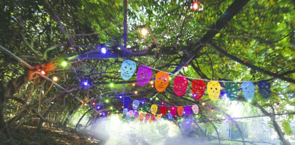 Samedi matin, direction le Jardin d’Acclimatation, paré de ses habits de fête pour célébrer la Dia de Mueros. Squelettes, mariachis, et fleurs de cempasúchil tapissent les allées. La Rivière Enchantée devient Envoutée, un Labyrinthe Maya a poussé au centre du jardin, et un nouveau manège, la Samba de Los Muertos, fait tournoyer ses montgolfières. Entre deux danses, on croque un churro, un pan de muerto, une chimichanga. Le sucre colle aux doigts, la musique nous prend aux hanches. Célébrer la mort, ici, c’est surtout aimer la vie.