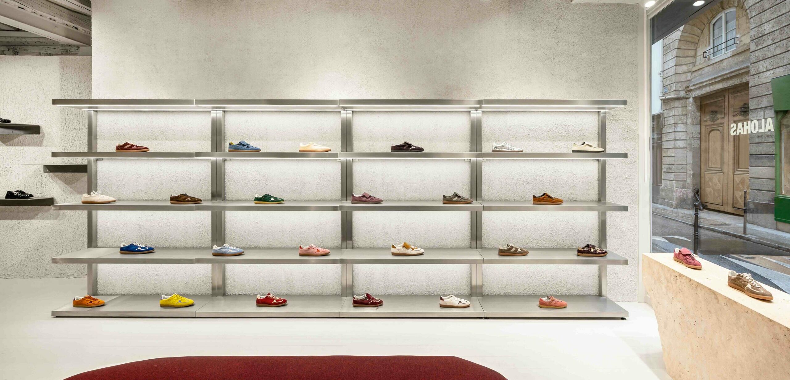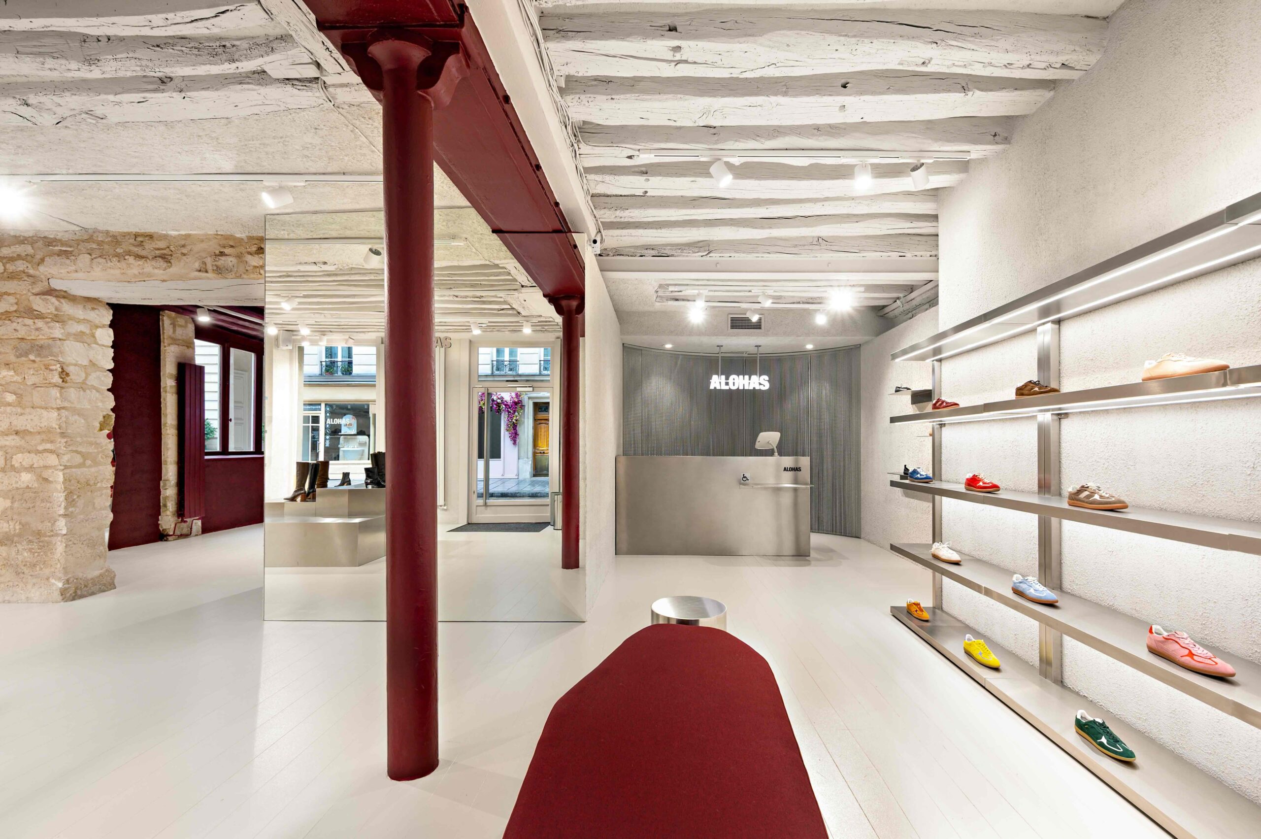 Ce week-end commence rue Vieille du Temple, le samedi matin où le Marais s’ébroue doucement. À peine passée la porte du numéro 75, on oublie le vacarme de la rue pour découvrir un nouvel écrin. La maison espagnole Alohas y a déposé ses cartons, troquant son ancienne adresse du 120 pour ce nouveau décor. Sur des étagères, les nouvelles collections côtoient les modèles iconiques, comme les TB.490. Ici, rien ne s’achète sur le champ : on essaie, on imagine, on commande…et l’on reçoit sa paire chez soi.