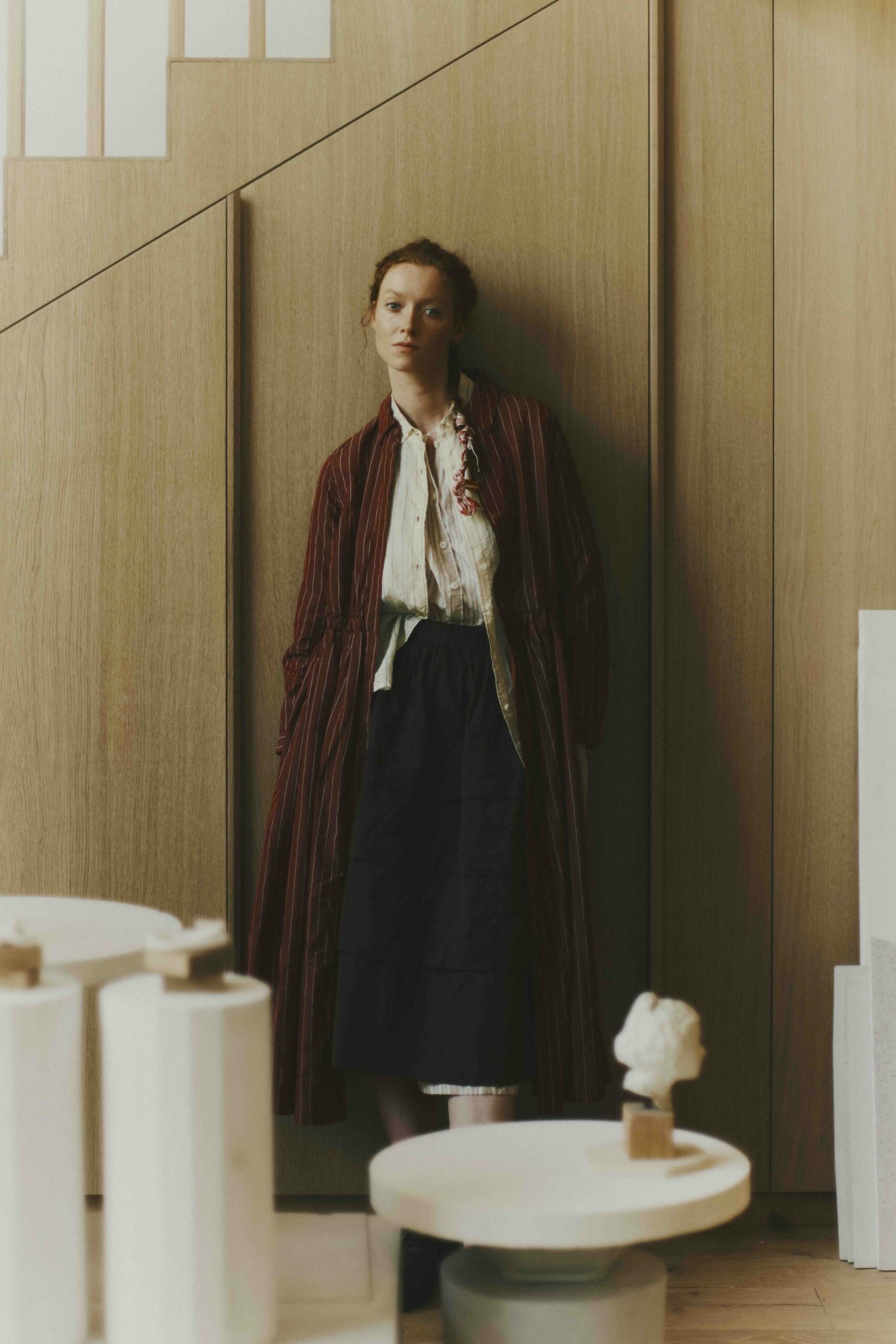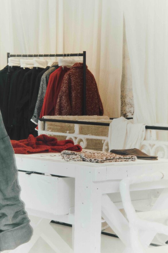 Fondée en 2008 par Gareth Casey, la marque franco-anglaise cultive l’art de la discrétion. Murs de pierre brute, sol blanc, voilages légers : la boutique ressemble à ses produits. Les écharpes sont disposées sur des établis. Les vêtements pendent sur des portants. Au fond, un parquet blanc conduit vers des cabines où l’on se sent comme chez soi. Les pièces sont teintes à la main, lavées, patinées et développent leur propre vie. Les collections, mixtes, traversent les saisons. Et c’est exactement pour ça que Paris en a besoin.