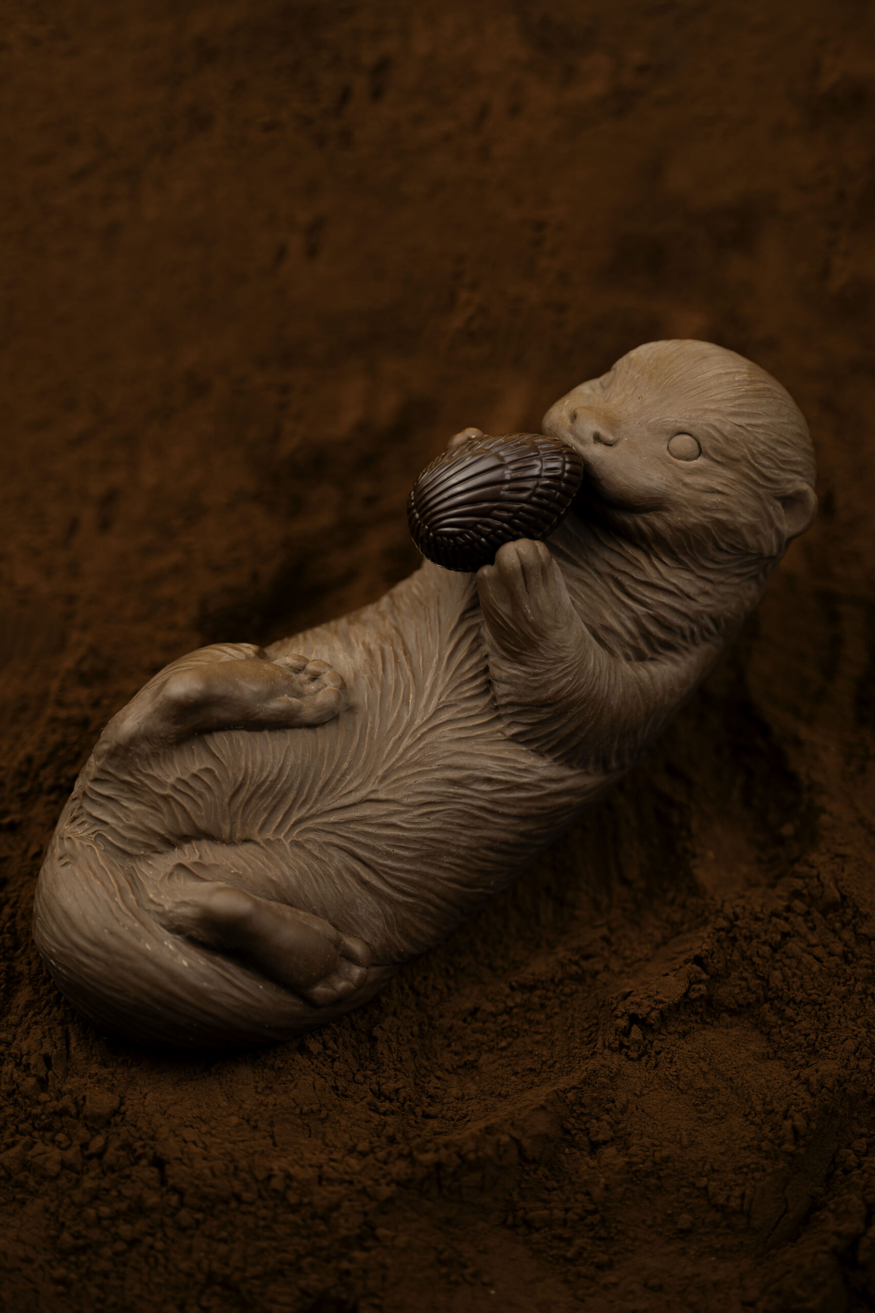William Artigue, jeune chocolatier talentueux, en collaboration avec une amie sculptrice, a donné vie à trois adorables loutres en chocolat. Parmi elles, un bébé loutre semble plongé dans un sommeil attendrissant, une autre affiche une expression joueuse, tenant délicatement un petit œuf de Pâques entre ses pattes, tandis que la plus imposante, la maman loutre, câline tendrement son petit. Chacune de ces créations est moulée dans du chocolat noir ou au lait, puis garnie d’une abondante friture et de petits œufs au praliné réalisée avec les chocolats noir et lait de Nicolas Berger.