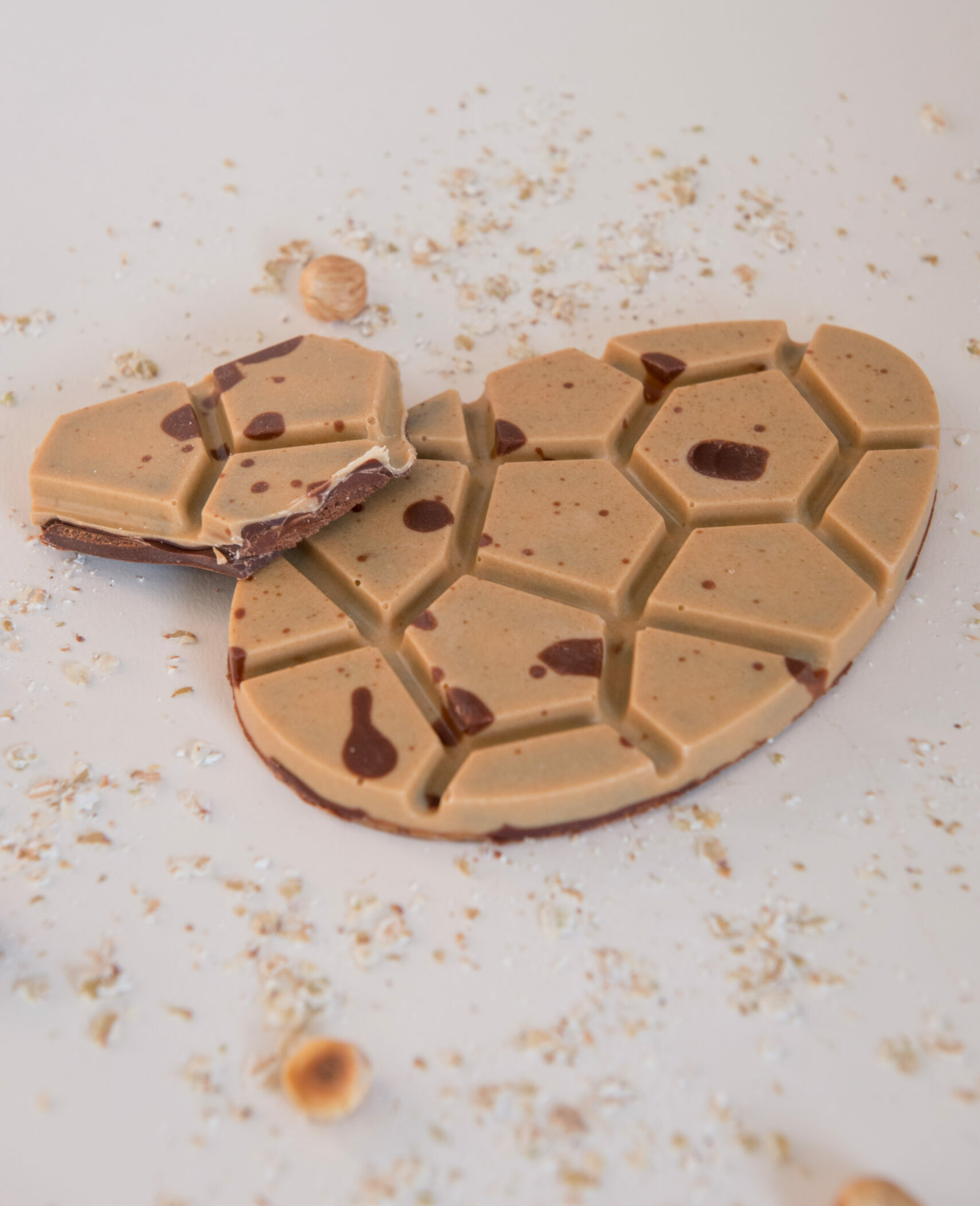 Parmi les animaux croquants et craquants de Cyril Lignac, nous avons craqué pour Speedy la Tortue en édition limitée pour Pâques. Sa coque est en chocolat dulcey doublée de chocolat au lait, garnie d’un assortiment de mini-oursons chocolat dulcey croustillants et d’œufs pralinés chocolat dulcey. Ses copains, Elvis le crabe et Atoll le poisson, sont composés de la même manière avec les parfums de chocolats qui changent.