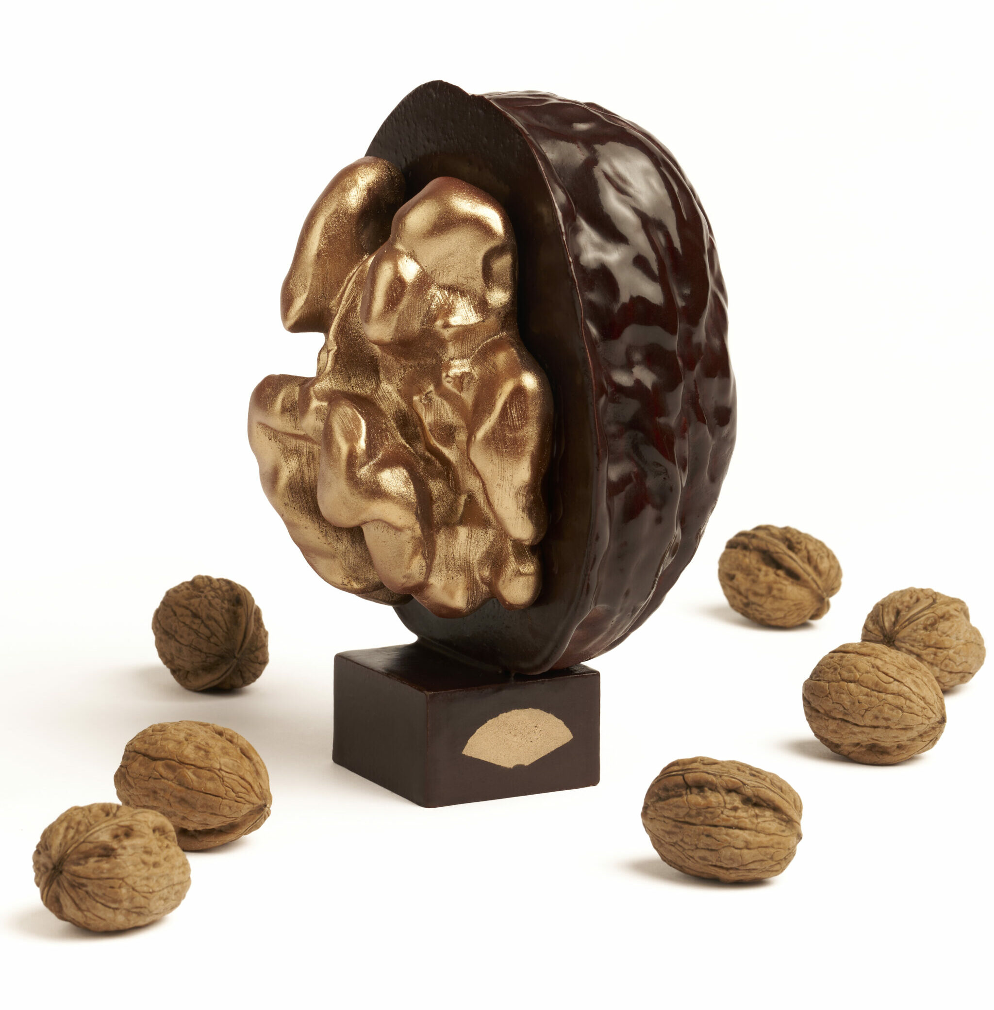 Adrien Bozzolo, le chef pâtissier du palace, se démarque avec un œuf en véritable trompe-l’œil d’une noix, aux cerneaux dorés et aux saveurs régressives. Composée de chocolat noir 70% avec des mélanges de grand cru, La Noix renferme en