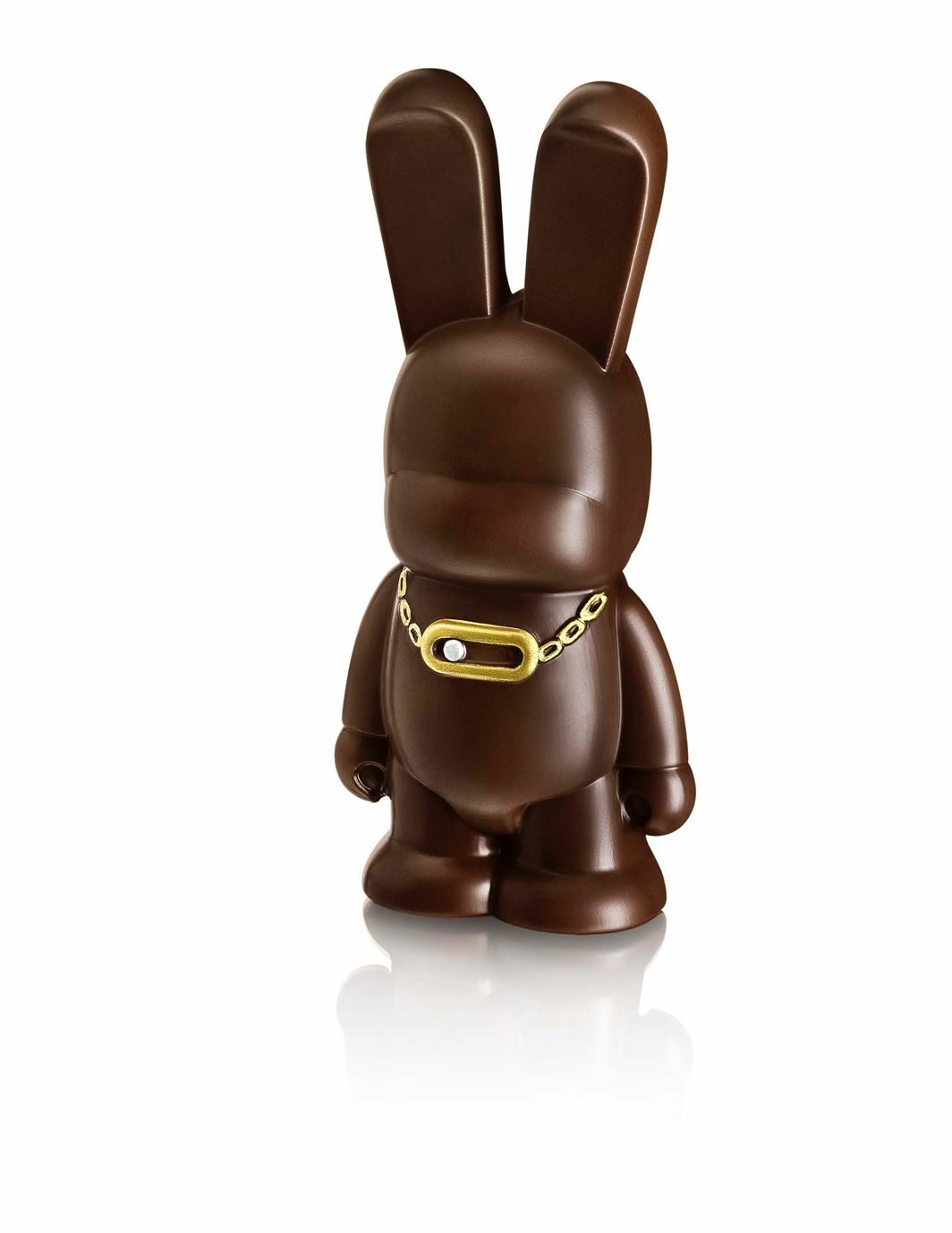 Pour Pâques, la Maison Messika s’associe à Madame Cacao. Une collaboration inédite, 100% gourmande pour tous les choco-addict. Pour cette collaboration, Christelle Brua et Valérie Messika ont eu envie de réaliser une création tout en chocolat alliant l’univers des deux maisons. Ainsi, Lucien, le lapin espiègle, emblème de Madame Cacao se pare pour l’occasion du célèbre Move Messika.