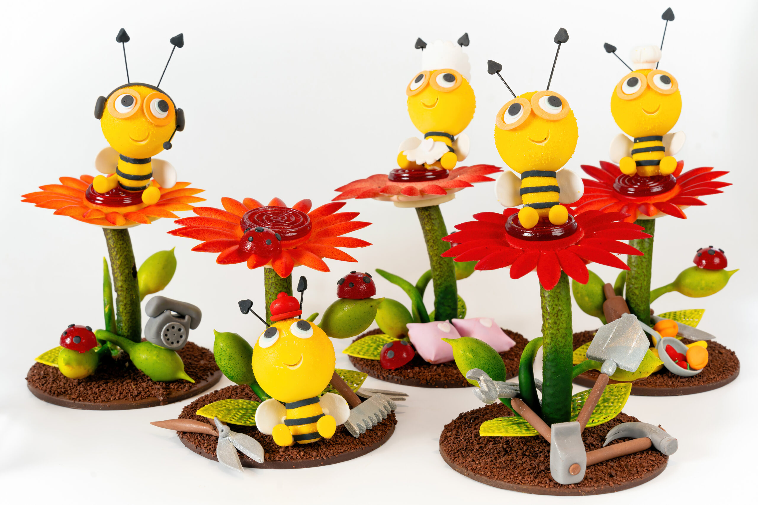 Pour la seconde année, le Waldorf Astoria Versailles – Trianon Palace plonge ses hôtes dans l’univers bourdonnant des abeilles. Les abeilles surmontent des sculptures de fleurs en chocolat symbolisant des personnages emblématiques de l’établissement : gouvernantes, pâtissiers, agents de réservation, techniciens… À la fois régressive et gourmande, cette création pâtissière s’accompagne d’un gâteau de voyage.