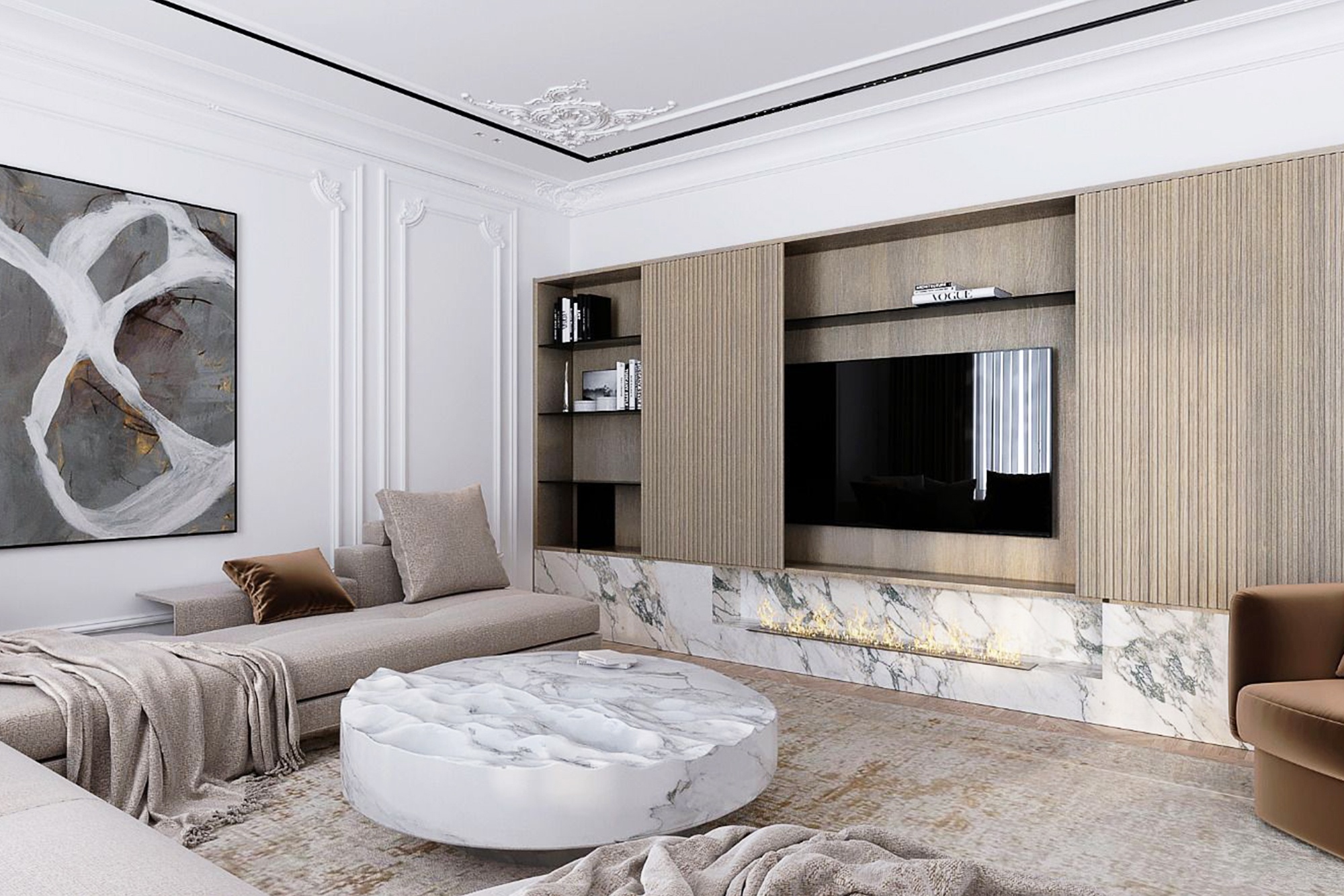 Très attaché au respect de l’histoire et de la typologie particulière de chaque adresse, Samuel Elbilia est un magicien de l’architecture d’intérieur. Dernièrement, il a entièrement repensé un appartement de six pièces (250m2) en habitation familiale. Là, il a imaginé un intérieur contemporain et convivial, dévoilant des matériaux nobles comme le marbre, des créations sur-mesure et des boiseries pour répondre au souhait des clients qui souhaitaient optimiser la lumière et l’espace de vie. Le tout dans une déclinaison de couleurs douces et nude.